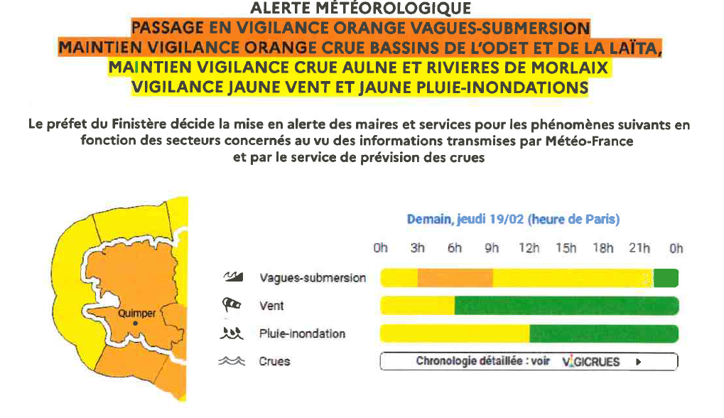 Vigilance orange crue Laïta, Odet ; jaune Aulne et rivières de Morlaix :