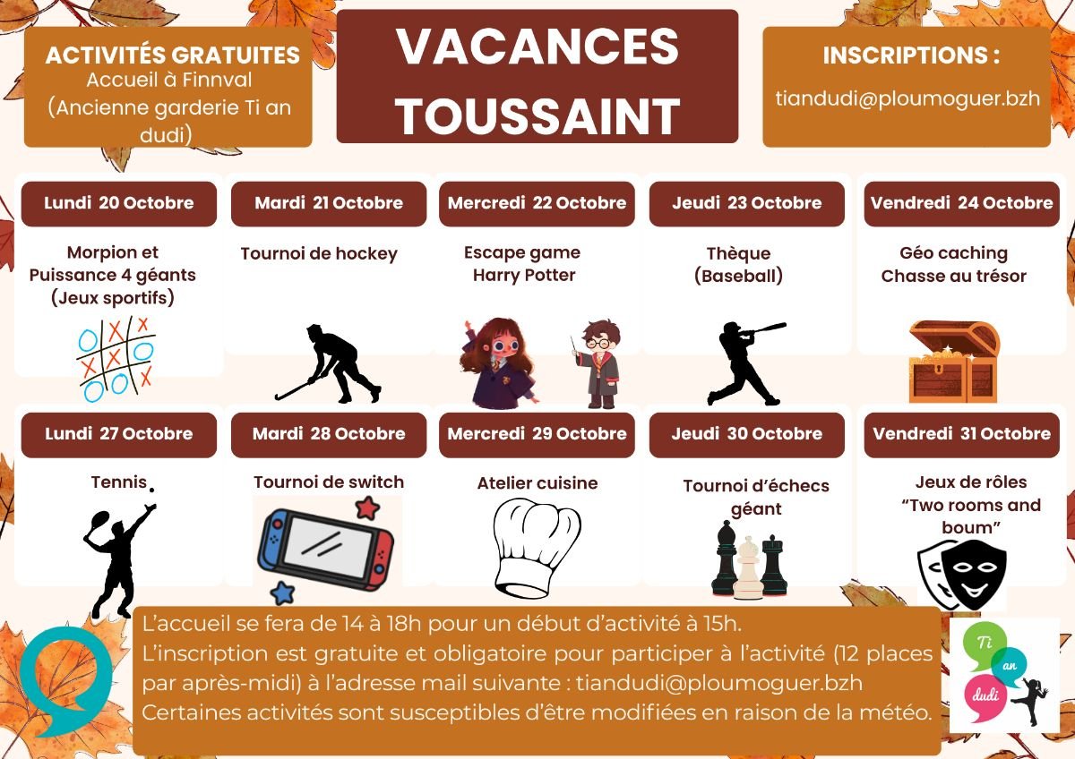 Les vacances de la Toussaint approchent et le service jeunesse de Ploumoguer propose des activités 100% gratuites tous les après-midi pour les jeunes âgés de 10 à 17 ans.